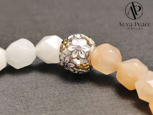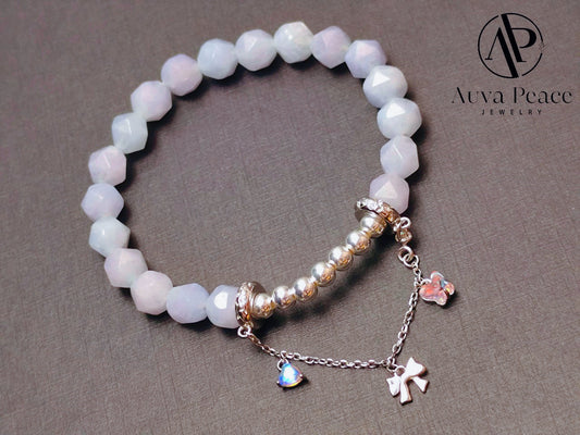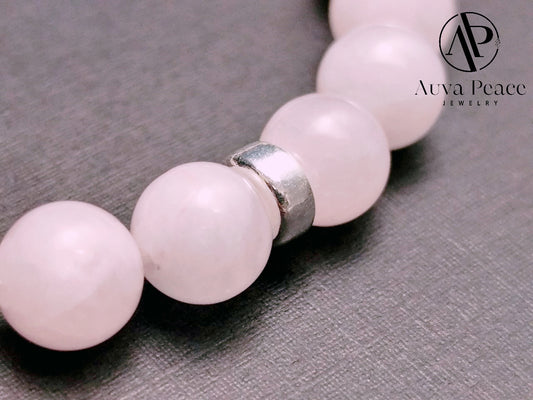 Genuine S925 Sliver Morganite + Rodeochrosite Bracelet (Bead 8mm / Bracelet Length: 16cm)