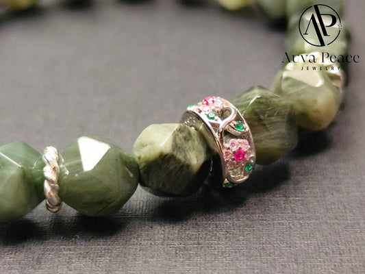 Genuine S925 Silver Green Rutilated Quartz (Bead 8mm Inner Diameter: 16cm)