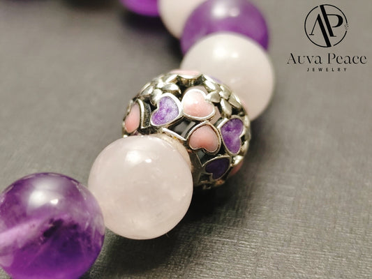 Genuine S925 Sliver Amethyst + Rose Quartz Bracelet (Bead 8mm Bracelet Length: 16cm)