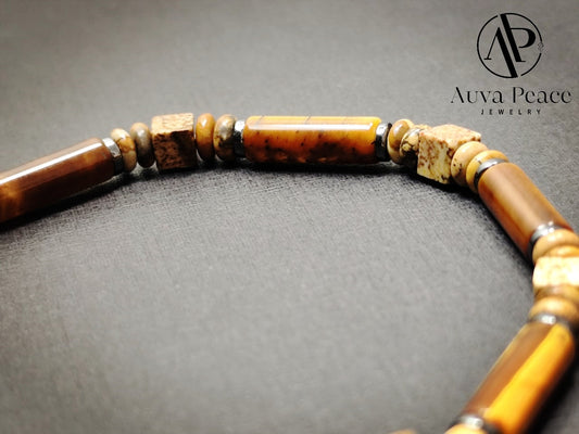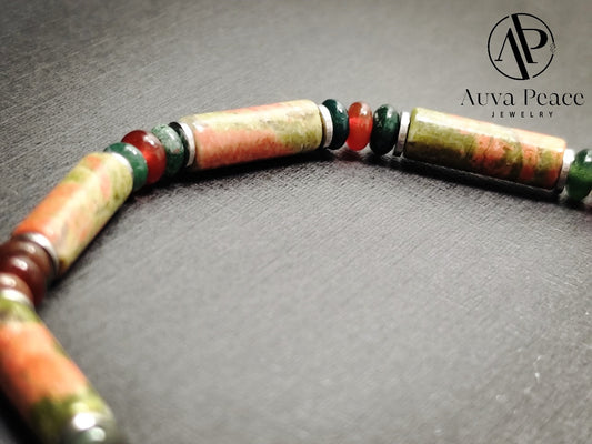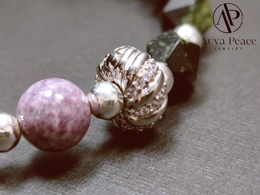 Genuine S925 Sliver Kambaba Jasper + Lipidolite Bracelet (Bead 8mm Bracelet Length: 16cm)