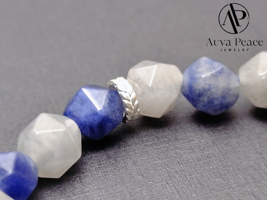 Genuine S925 Silver Blue-Vein Stone + Cloud Quartz Bracelet (Bead 8mm Inner Diameter: 16cm)