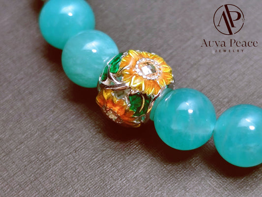 Genuine S925 Silver Amazonite + Aventurine Bracelet (Bead 8mm Bracelet Length: 16cm)