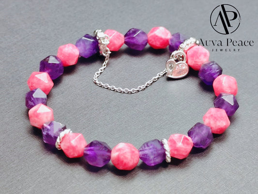 Genuine S925 Sliver Amethyst + Rhodochrosite Bracelet (Bead 8mm Bracelet Length: 16cm)